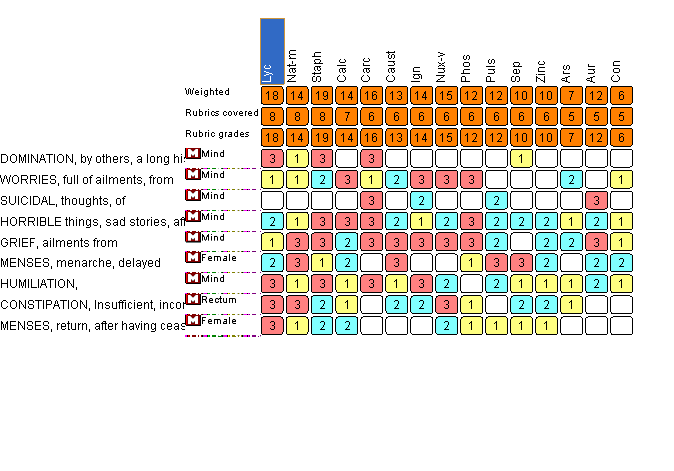 covering all rubrics NATRUM MURIATICUM & IGNATIA.